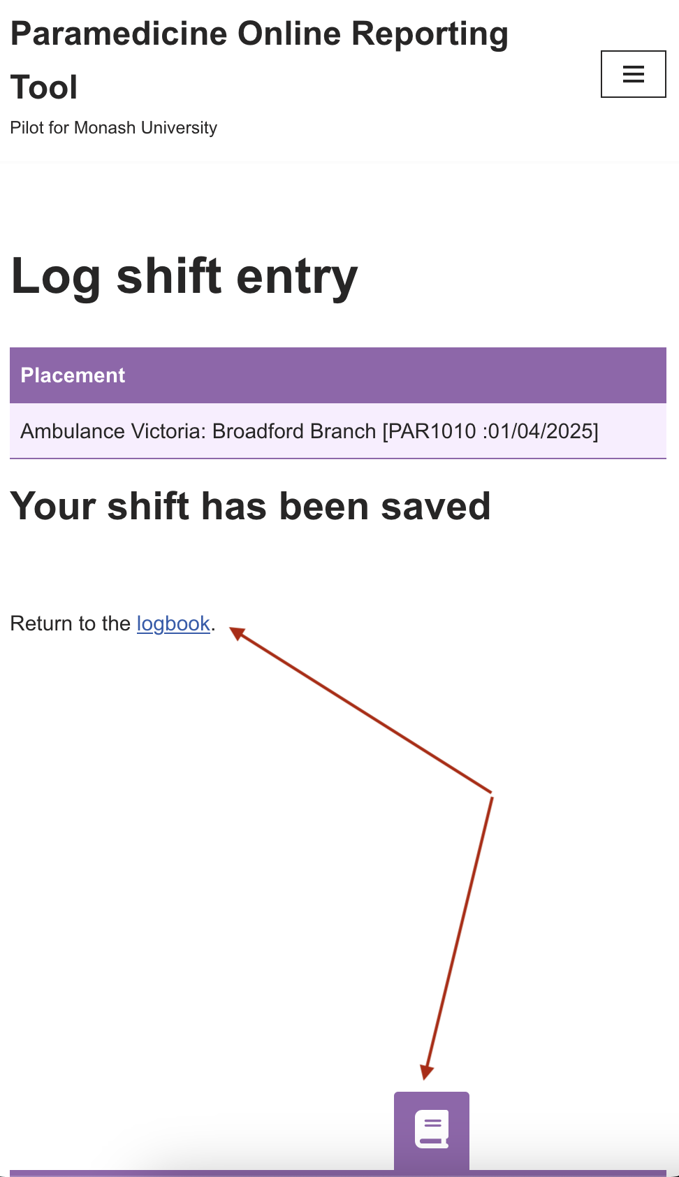 3. Go back to the logbook page, via the link or icon at the bottom of the a screen